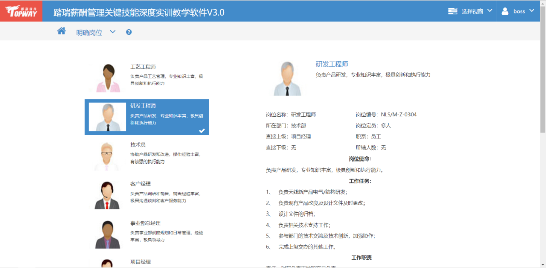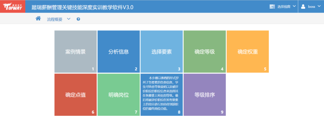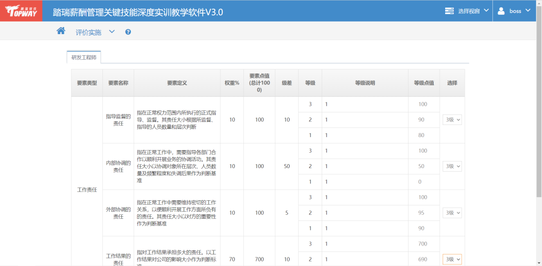 踏瑞薪酬管理智能反馈比赛软件对薪酬管理的各关键技能模块进行案例实训,难易程度分层设置,方便老师根据授课进度分配实验,帮助学生循序渐进学习薪酬管理知识,试验结束后自动生成智能反馈报告,对学生实现成果自动评分,社区化的个人管理界面增进师生交流互动,鼓励学生分享经验,帮助学生更好的掌握薪酬管理的一般方法。