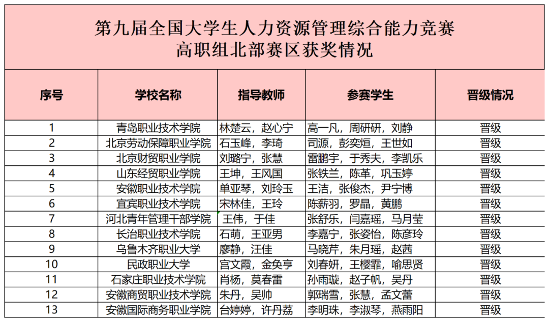在参赛选手和指导老师的焦急等待中,大赛组委会本着公平、公正、公开的原则,统计并核算各参赛团队比赛成绩,获奖名单如上。至此,第九届全国大学生人力资源管理综合能力竞赛(高职组)北部区域赛圆满落下帷幕。