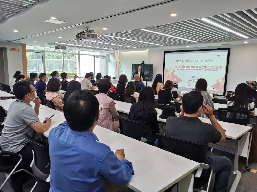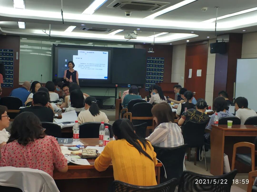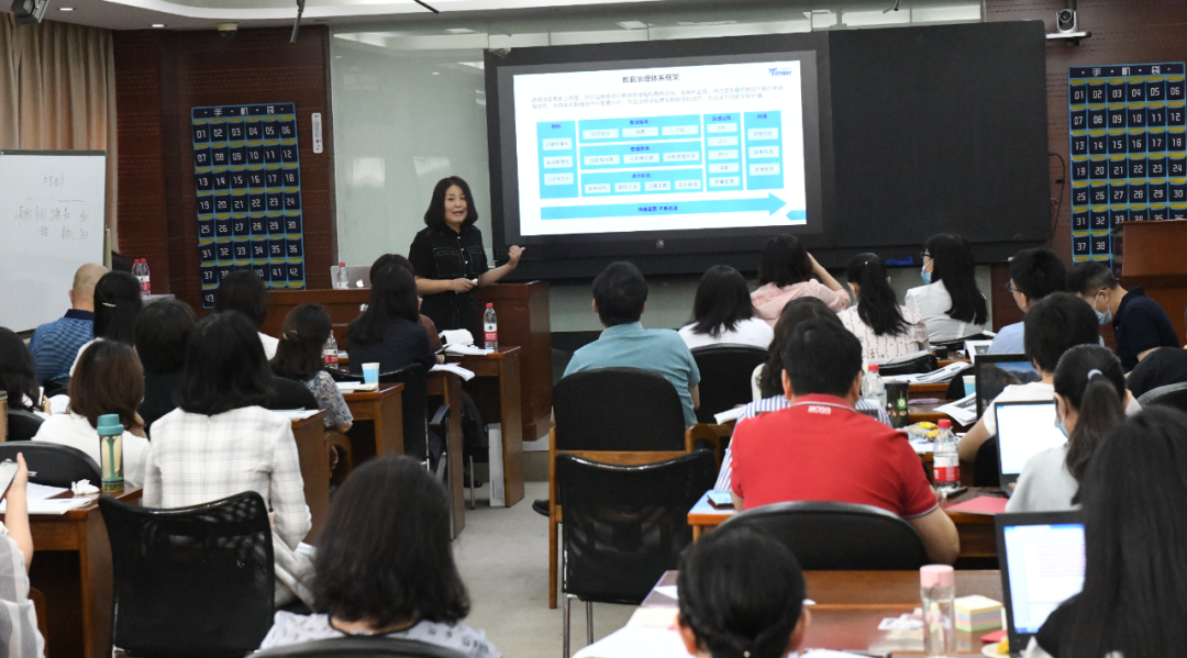 上海近屿智能科技有限公司市场副总裁崔晓燕老师授课(崔老师还特别准备了企业人力资源共享服务领域知名作者的签名书籍作为礼品,与老师们分享。)