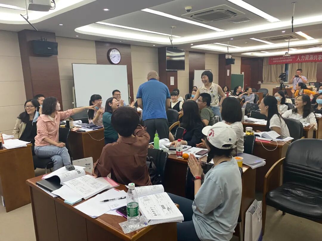 培训现场有“升维培养,降维就业”的热烈话题讨论,升维做战略降维选人才,破解“用人”难题;有场景模拟、面试各环节角色扮演等,老师们"Cosplay"不亦乐乎;有“最强大脑”游戏比拼环节,小组PK赛抢答赢积分等,参培老师们学习氛围异常浓厚。