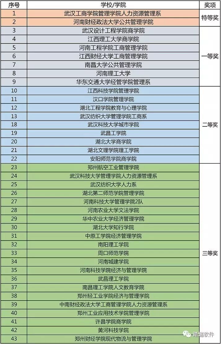 武汉设计工程学院商学院、江西理工大学商学院、河南工程学院工商管理学院、江西财经大学工商管理学院、南昌大学公共管理学院、河南理工大学、华东交通大学经管学院管理系获得一等奖。